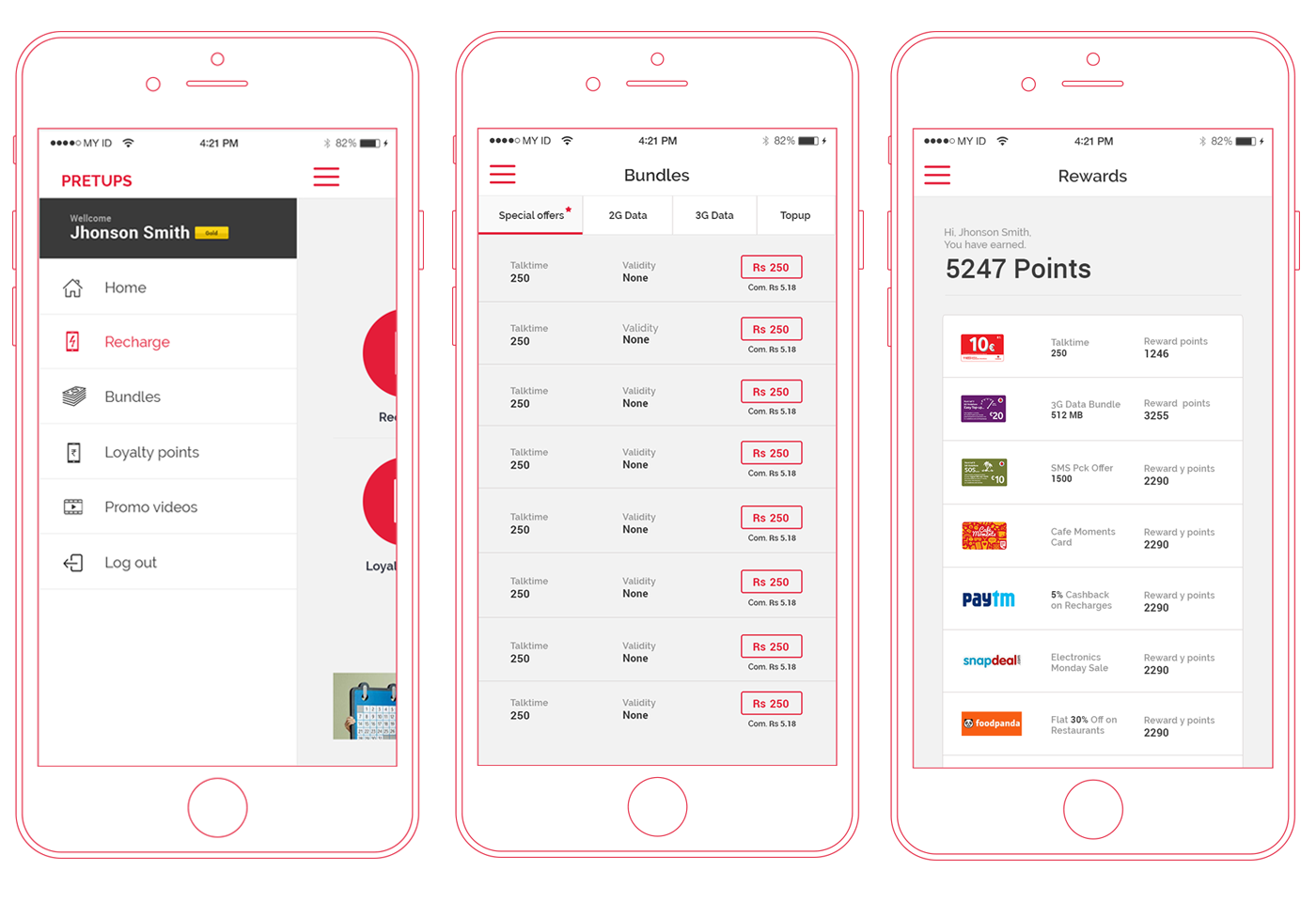 Creating a user centered design for Pretups platform app which is used to manage retailer account, provide contextual offer to customer through retailer app and upsell products by providing commission and loyalty points options on every recharge, loyalty management option for retailers also provided through this app.