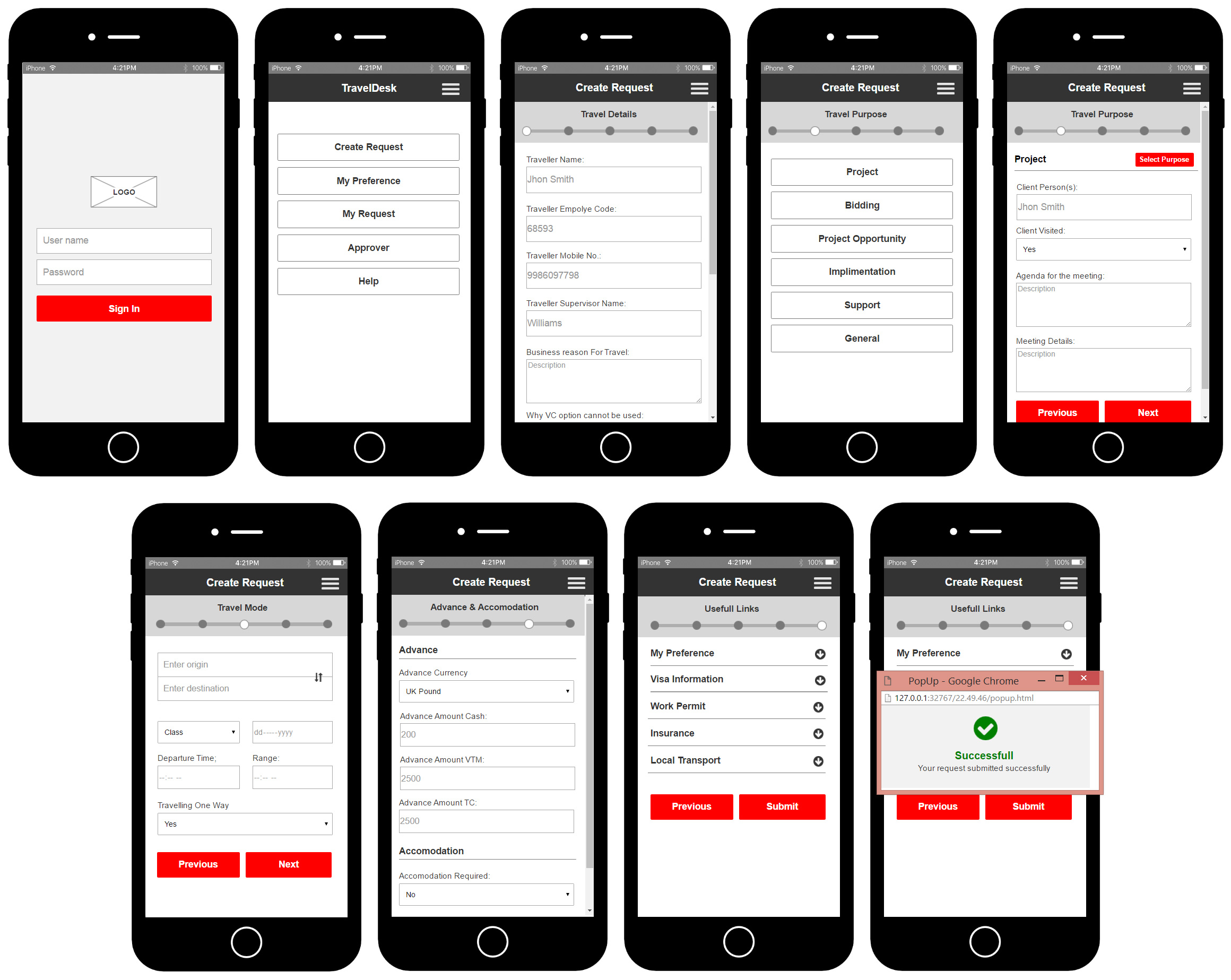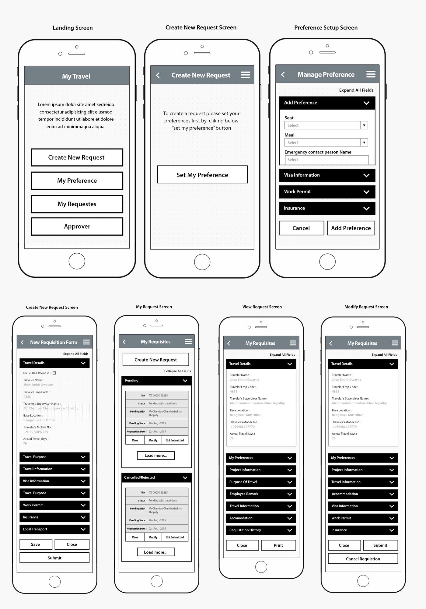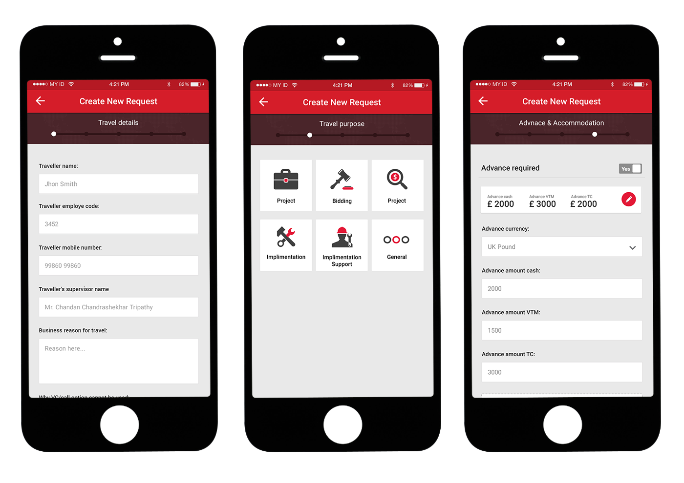 Creating a mobile application for iOS and Android, which empowers employee to serve all travel requirements like travel, accommodation advance amount and other travel related requirements on the go in few clicks and keep users updated on the status of the request by notification features. From raising request, tracking status of approval of the request also enabling to change, modify and cancel the request by app on the go.