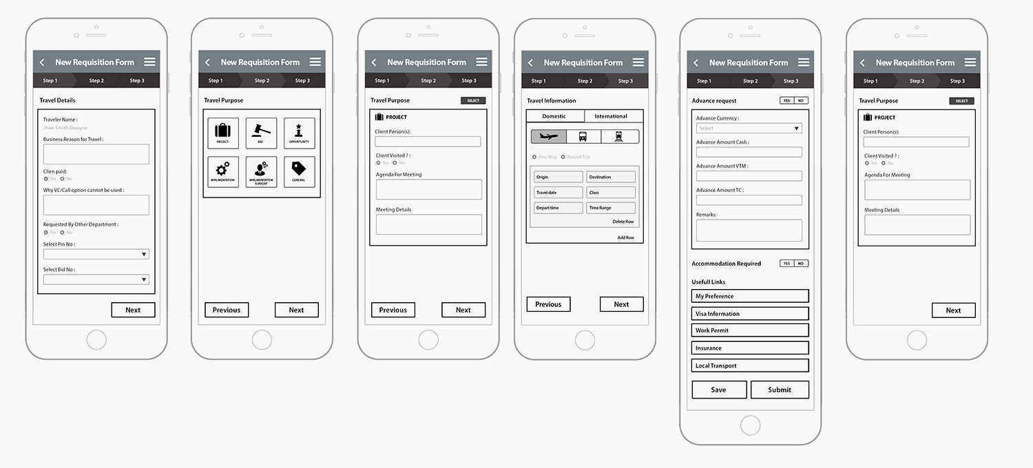 We categorized the forms into little groups to reduce the lengthy form and keep it consolidated and step by step process and cut down non mandatory field to reduce the number of inputs keep it simple and make raising travel request fast.